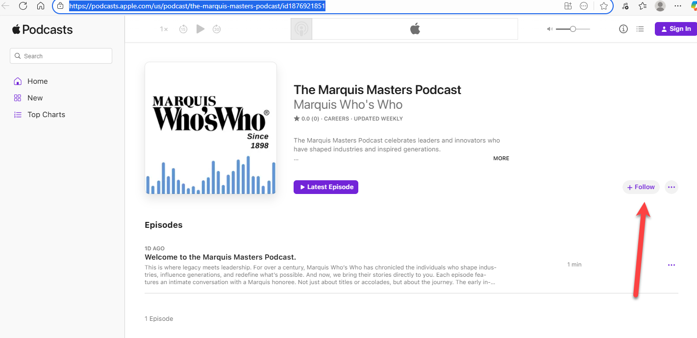 - Click on the Marquis Masters Series Apple Podcast Link:
