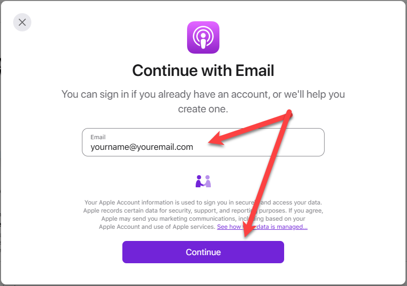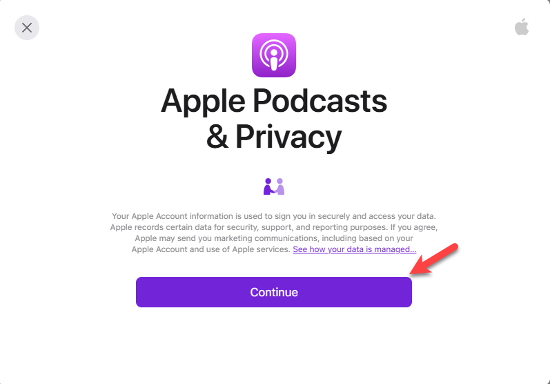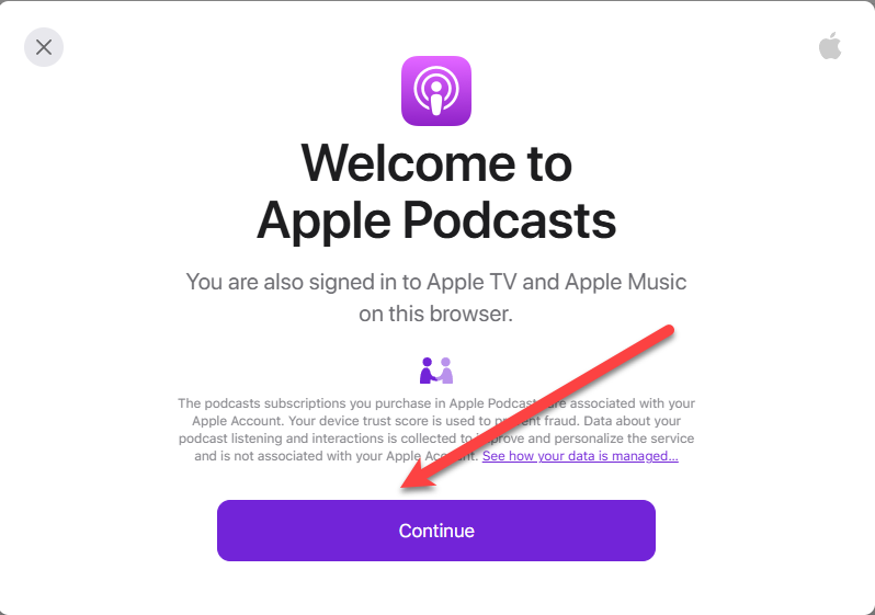 - When you are directed to the Apple Podcast site, you will have to click on Follow again.